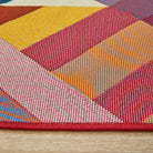 The Vista Geo Multi Rug and Runner, power-loomed in Egypt with a flatweave construction, showcase bold geometric patterns in multiple colors. Perfect for indoor and outdoor areas, these rugs and runners bring contemporary flair, texture, and lasting durability to living rooms, hallways, or outdoor paths.