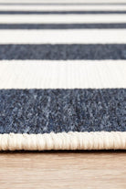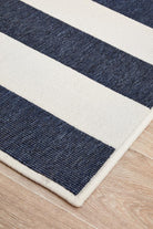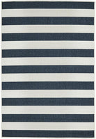 Navy and white stripes create a bit of nautical flair, bringing a coastal look instantly. This easy-care collection is designed to be used outdoors as well as indoors, these rugs are water resistant and will add an element of fun to any space. This short, easy to clean pile made from durable polypropylene and is power loomed.